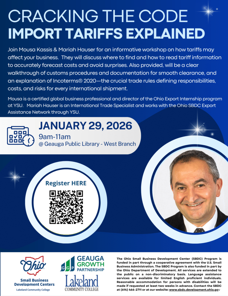 Join us for this focused, in-person 2-hour workshop led by experts from the Ohio SBDC Export Assistance Network at YSU. We will simplify the critical elements every successful importer needs to master: