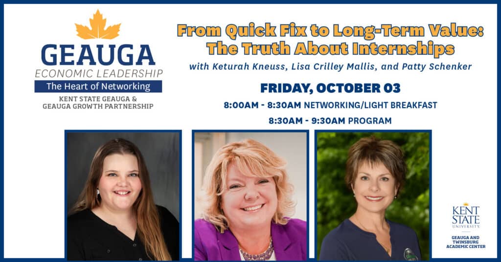 Co-sponsored by Geauga Growth Partnership and Kent State University at Geauga. These events are an opportunity to bring business and industry leaders together with our community to network, learn, and collaborate. Each event is intended to foster a heightened awareness of business, industry, and public services present in Geauga County and to facilitate networking among the members of those sectors. Anyone working or living in Geauga County will benefit from learning more about our local employers and services.